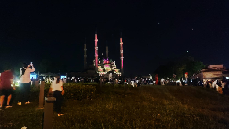 Etkinlikler kapsamında Selimiye Camii’nin görkemli yüzeyinde, ‘Video Mapping’ teknolojisiyle İstanbul’un fethi üç boyutlu olarak canlandırıldı.