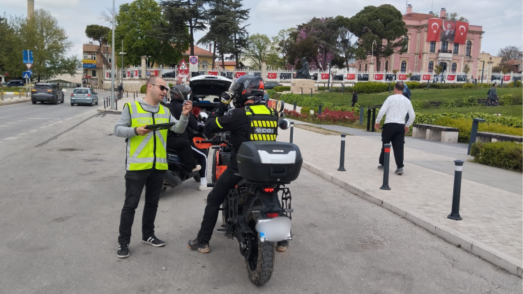 Edirne İl Emniyet Müdürlüğüne bağlı Trafik Ekipleri bugün Selimiye Meydanı’nda, turist otobüsleri yolcu indirip-bindirme alanında trafik denetimi yaptı.