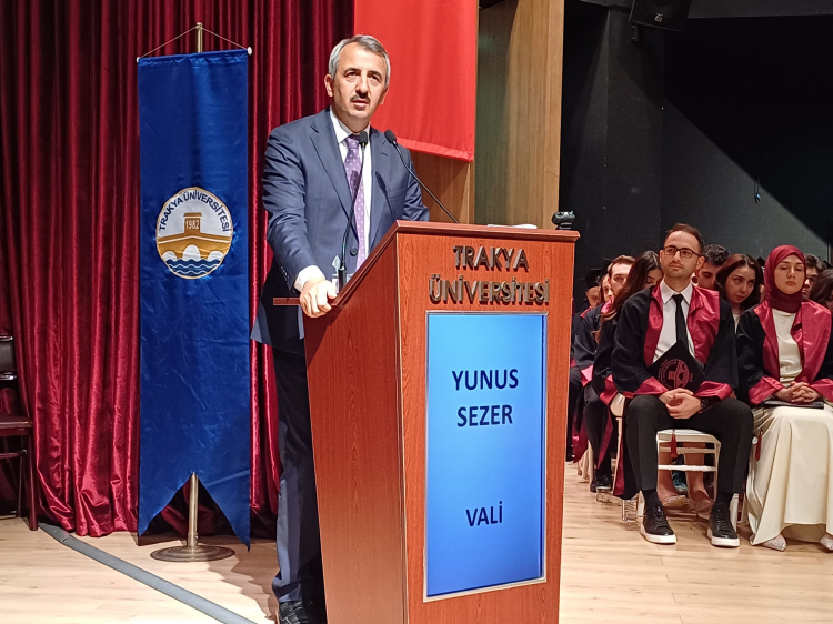 230 yeni hekimin mezuniyetinde konuşma gerçekleştiren Edirne Valisi Yunus Sezer, "Anadolu'nun değişik ilçelerinde ve beldelerinde sağlık ocakları, sağlık evleri var. O zaman ziyaret ettiğimiz zaman tek başına bir doktoru lojmanda kaldığını görüyorsunuz. Yanında küçük bir okul var okulda bir öğretmenin birkaç öğretmenin orada beraber olduğunu görüyorsunuz. Ben o zamanlar aynı şeyi düşünüyordum, şimdi de aynı şeyi düşünüyordum. Biz devletimizin merhamet elini, devletimizin şefkat elini, milletimizin ortak oluşturduğunu düşünüyorum" dedi.