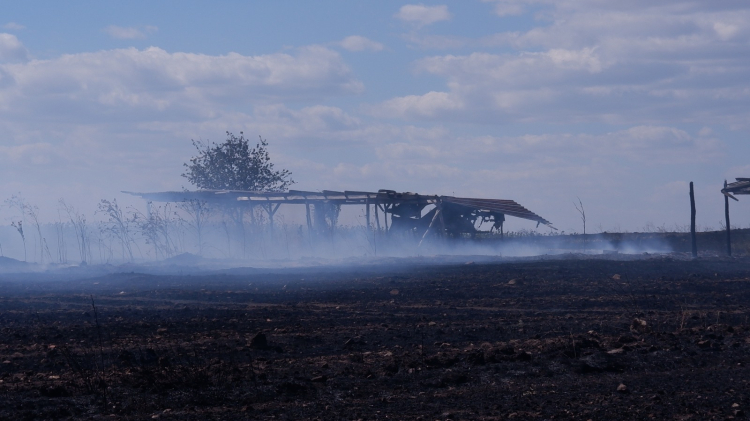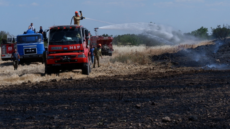 Kısa sürede büyüyen alevler, ilçenin her yerinden görüldü. İhbar üzerine olay yerine itfaiye ve orman ekipleri sevk edildi. Çiftçilerin de traktörleriyle söndürme çalışmalarına destek verdiği yangın, rüzgarın etkisiyle müdahaleyi güçleştirdi. Uzun süren çalışmalar neticesinde yangın kontrol altına alındı. Yangında, hasat edilmemiş buğday tarlaları, ormanlık alan ve hayvan ağılları yanarak zarar gördü.