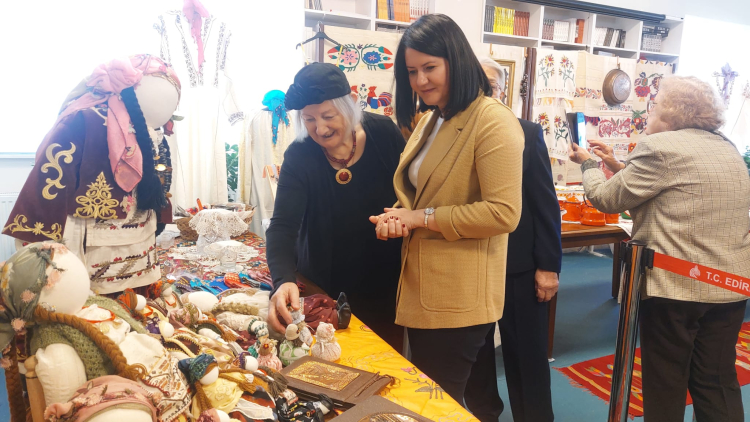 Serginin ilk açılışını yapan Suna Sarvan Hasdoğru, “Bu sergimiz bir vesile. Aslında gençlerimizin eğitime katkı sağlamak maksadımız ve Edirne’de bir farkındalık yapmak. Ben gençliğimden beri böyle bir şey yapmak istiyordum. Çok eski tarihli el emeklerim var ama bir türlü cesaret edemedim ve kendimi 80 yaşında buldum. Bugün de yaptığım el işlerini buraya hediye olarak bağışladım” dedi.