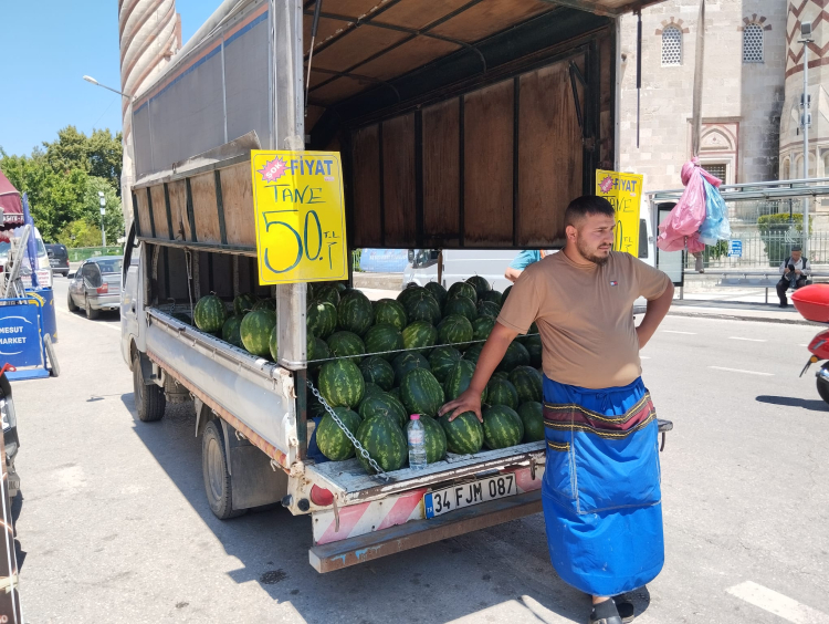 Üç Şerefeli Camii önünde tanesi 50 liradan satılan Adana karpuzuna Edirneliler yoğun ilgi gösterdi. Elindeki malın yarıya yakınını birkaç saat içinde sattığını söyleyen Levent Nekrita “Tanesi 50 liradan satıyoruz. Vatandaşlar 50 lira olduğunu görünce 4’er tane alıyorlar. Bazı meyvelerin 150, 200 liraya satıldığı yerde kocaman karpuzun 50 lira olması dolayısıyla satışlarımız gayet iyi. Elimdeki malın yarıya yakınını birkaç saat içinde sattım. Vatandaş ucuz karpuz yesin” dedi.