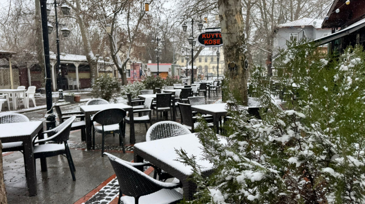 Edirne’de etkisini sürdüren kar yağışı, kentin tarihi ve turistik mahallesi Karaağaç’ta adeta görsel bir şölene dönüştü.