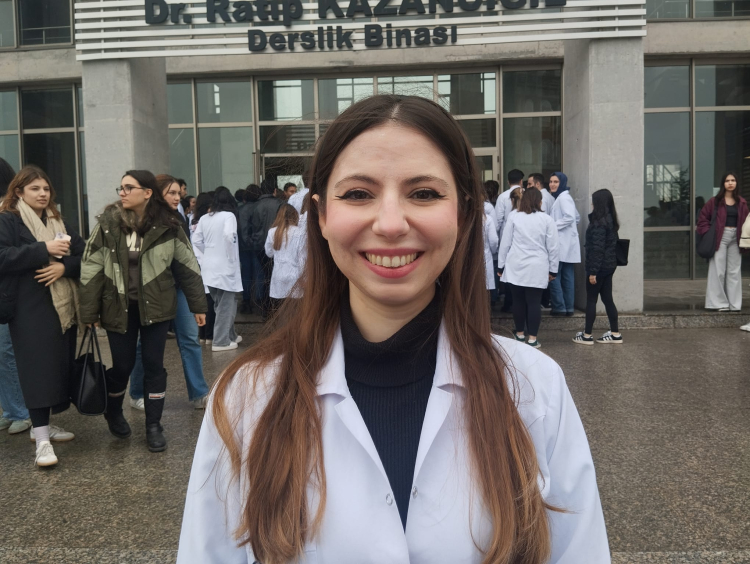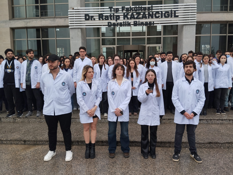 Tıp Fakültesi 4’üncü sınıf öğrencisi Pınar Etyüzen okuduğu basın açıklamasında toplanma sebeplerini, yalnızca kendilerini değil, içinde yaşanılan toplumu ilgilendiren haksızlıklara ve hukuksuzluklara karşı sessiz kalmamak olarak belirtirken şunları ifade etti; “Bizler, hekimlik yemini etmeye hazırlanan tıp öğrencileri olarak, yalnızca hastalarımıza değil, aynı zamanda adalete, vicdana ve mesleğimizin etik değerlerine bağlı kalmaya da söz veriyoruz. Bugün burada toplanmamızın nedeni, yalnızca bizleri değil, içinde yaşadığımız toplumu da ilgilendiren haksızlıklara ve hukuksuzluklara karşı sessiz kalmamaktır. Hekimliğin temelinde insan hayatına saygı, hakkaniyet ve etik ilkeler vardır. Eğer bu ilkeler göz ardı edilirse, yalnızca mesleğimiz değil, toplumun tamamı zarar görür. Bizler, hastalarımıza şefkatle yaklaşan, bilimsel doğrularla hareket eden, hakikatin peşinden giden insanlar olmak için buradayız. Ve unutulmamalıdır ki hakikatin susturulması, sağlığın susturulmasıdır. Sağlık, yalnızca bedenlerimizin değil, aynı zamanda toplumumuzun da sağlıklı işlemesiyle mümkündür. Bugün burada attığımız her adım, adaletli, özgür ve etik değerleri koruyan bir Türkiye ve meslek ortamı için bir çağrıdır. Hep birlikte, bilimden, doğruluktan ve vicdandan yana durmaya devam edeceğiz. Diğer öğrenci arkadaşlarımızın da aynı tepkiyi koymaları bekliyoruz. Türkiye’deki tüm tıp fakültelerinden ve Trakya Üniversite’ndeki diğer fakültelerden de aynı hassasiyeti ve sağduyuyu göstermelerini bekliyoruz.”