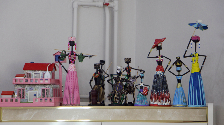 Çatalkaya, "Emekli olduğum için kendimize bir terapi olsun, bir uğraş olsun diye geri dönüşümle Afrikalı bebekler yapmaya başladım. 4 yıldır yapıyorum. Çok da başarılı olduğuma inanıyorum. Bunları geri dönüşüm olarak, sizin çöp dediğiniz, atık dediğiniz, çöp tenekelerine attığınız kağıtlardan, okul defteri, kitabı, soda, gazoz şişeleri, konserve kapakları, aklınıza gelebilecek atık olarak değerlendirdiğiniz her şeyin çoğunu kullanıyorum" dedi.