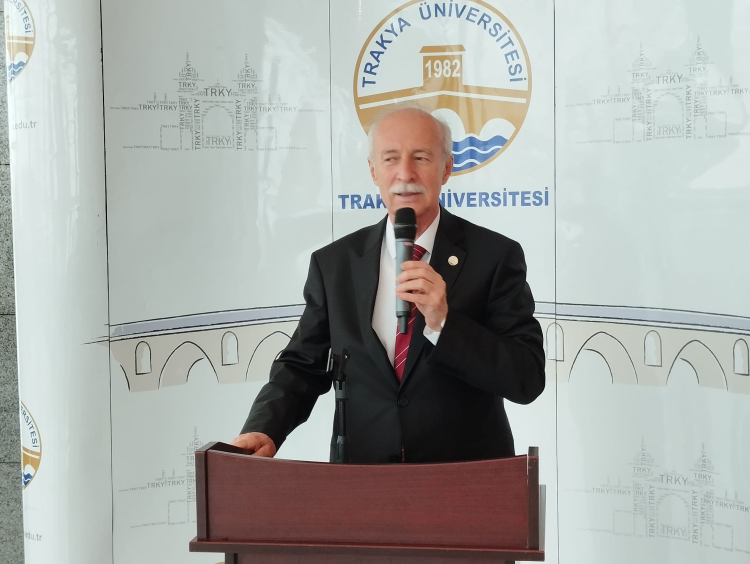 Trakya Üniversitesi Balkan Kongre Merkezi salonunda gerçekleştirilen törende konuşan Rektör Hatipler; “Bizim medeniyetimizde bayram günü merhamet günüdür. Bizim medeniyetimizde bayram günü sevginin, sevmenin en üst düzeye çıktığı gündür. O nedenle küçükler büyüklerin ellerinden öper. O nedenle büyükler küçükleri sarmalar ve öper. Bu hareketin anlamı sadece sevgidir. Bu bayram vesilesiyle birbirimizi sevelim. Ramazan Bayramınız mübarek olsun” dedi.