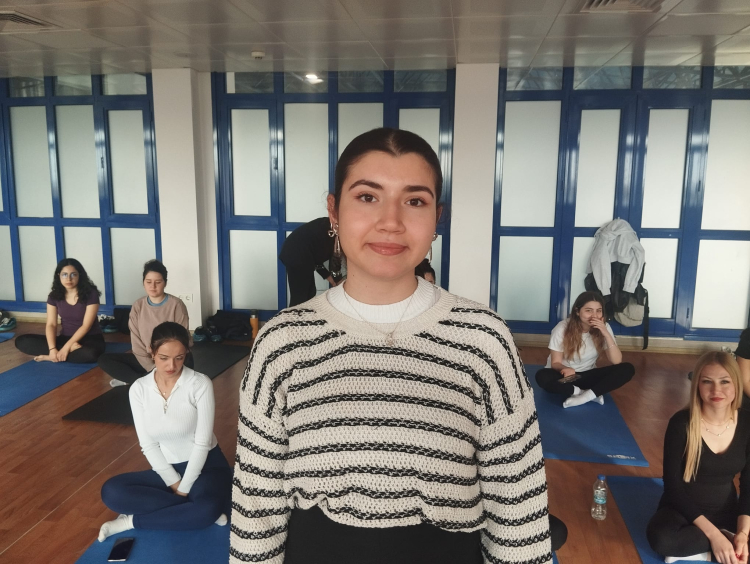Yoganın ruh ve beden sağlığına katkı verdiğini söyleyen yoga eğitmeni Tuğçe Pehlivan “Haftanın iki günü üniversite bünyesindeki arkadaşlarımıza burada toplanıp etkinlik yapıyoruz. Amacımız bütünsel sağlığa, ruh beden sağlığına katkıda bulunmak, bilinci, farkındalığı arttırmak. Her dersin farklı konuları var” dedi.
