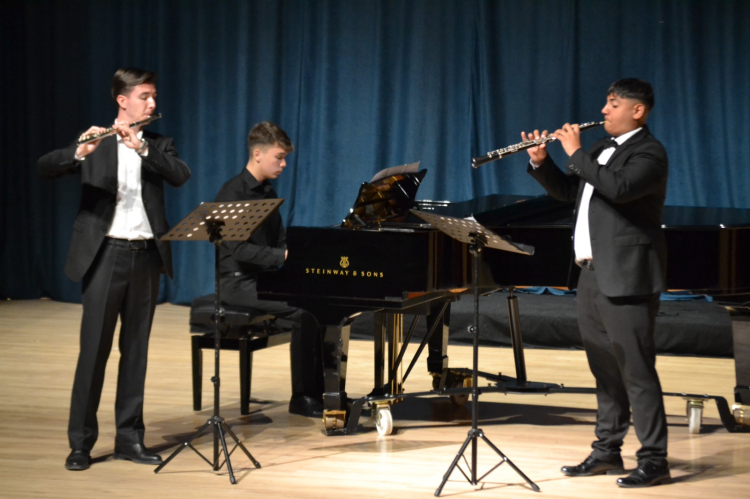 Konser, Lise 2 öğrencileri İnci Uzun ve Tuğra Kanat’ın flüt ve piyano ile icra ettiği Antonio Vivaldi eserleri ile devam ederken; ikilinin ardından sahneye Lise 4 ve Lise 3 öğrencileri Ege Erkut, Göktuğ Nazmi Örs ve Arda Duman çıktı. Flüt, obua ve piyano ile Anselme Vinée eserini seslendirdiler.