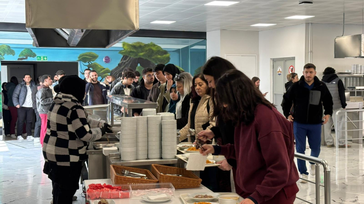 Öğünler hakkında bilgi veren Hatipler, “Bunun yanı sıra Sağlık, Kültür ve Spor Daire Başkanlığımızın yakın takibiyle yemeklerimizin kalite ve kalori kontrolü de düzenli olarak yapılmaktadır. Sadece kalori değil, aynı zamanda kalite ve lezzet açısından da sürekli denetim gerçekleştirilmektedir. Bugün olduğu gibi, geçmiş günlerde de hem öğrenci hem de personel yemeklerimiz oldukça lezzetli ve standartlara uygun şekilde sunulmaktadır” şeklinde konuştu.