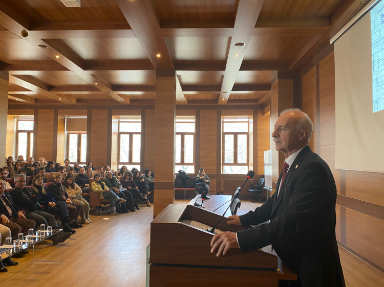 Rektör Hatipler, yaptığı konuşmada; “Bugün burada yarışma kültürünün bir sonucu olarak ortaya çıkan öğrencilerimizin başarıyla taçlandırdığı bir olayın son aşamasında bu başarıyı bu sevinci birlikte paylaşmak üzere toplanmış bulunuyoruz. Eğer bir şehirde Mimarlık Fakültesi varsa ve bu Mimarlık Fakültesi’nin başında da Semiha Kartal hocamız varsa öyleyse bugünden sonra Edirne’de mimari ile alakalı ne oluyorsa ne yapılıyorsa bundan mutlaka bizim haberimiz olacak ve mutlaka bizim önümüzden bir geçiş bir onay bir izin yaşanacak. Ayrıca bugünün kahramanı olan öğrencilerime huzurunuzda ayrı ayrı teşekkür ediyorum. Yarışmalara katılmak, yarışmalardan ödül almak çok güzel, her türlü takdirin üzerinde. Ancak bu durum sadece bir durak bir konak değil. ‘Ben ödül aldım tamam’ hayır, tam tersi ödül aldınız bu bir durak. Bundan sonra daha büyük adımlara, güçlü ve zor imtihanlara hazır olmanız gerekiyor” ifadelerine yer verdi.