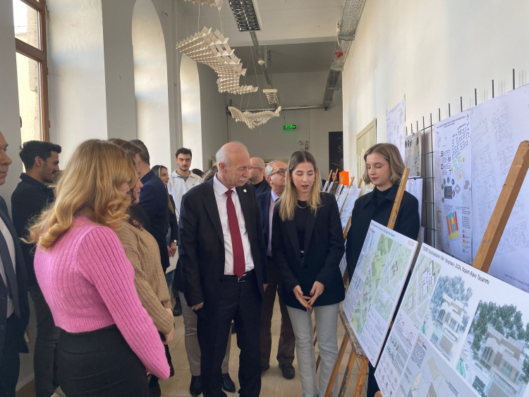 Belge töreni ardından, ödül alan öğrencilerin eserlerinden oluşan sergi açıldı. Rektör Hatipler, sergiyi gezerek bilgi aldı.