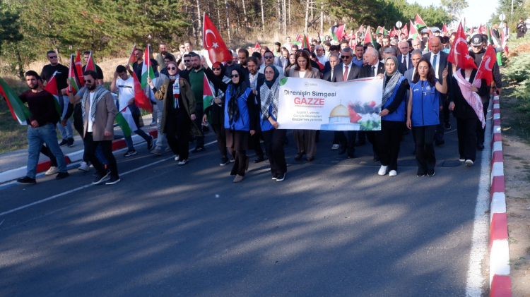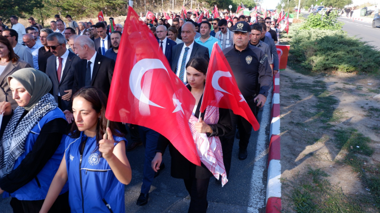Yürüyüşe katılanlar, birlik ve dayanışma ruhuyla Gazze halkının yanında olduklarını gösterdiler. Filistin'e destek verdiklerini, İsrail'in soykırımına isyan ettiklerini belirten katılımcılar, ellerinde Türk, Filistin bayrakları ve çeşitli pankartlarla sloganlar attılar.
