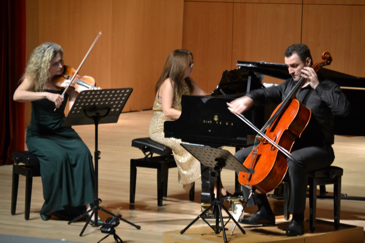 Akademisyenlerin, öğrencilerin ve sanatseverlerin katıldığı konserde “EGM Trio”, Sergei Rachmaninoff ve Johannes Brahms’tan eserler seslendirdi. Katılımcıların beğenisini kazanan üçlü, alkışlar eşliğinde konseri tamamladı.