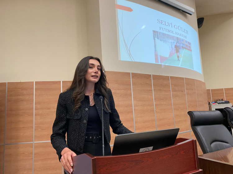 Futbol hakemi Selvi Güler ise spor alanında kadınların karşılaştığı zorluklara değinerek, özellikle erkek egemen sporlarda kadın hakemlerin daha fazla desteklenmesi gerektiğini ifade etti. Güler; “Ben sporcu kimliğim ile buradayım. Spor, hayatımda hep vardı. 2016-2017 sezonunda, üniversite 1. sınıfta iken Futbol Hakemliğine başladım. 1 yıl aday hakem, 2 yıl il hakemi olarak görev yaptım. 5 yıldır da Bölgesel Hakem olarak görevime devam etmekteyim. Kadınların futboldaki varlığı her geçen gün artıyor. Bu süreçte bizlere düşen en büyük görev, cesaretimizi kaybetmeden çalışmaya devam etmek ve bizden sonra gelecek kadın hakemlere yol açmaktır. Kadınların sahalarda daha fazla yer alması için elimizden gelen desteği vermeye devam edeceğiz” şeklinde konuştu.