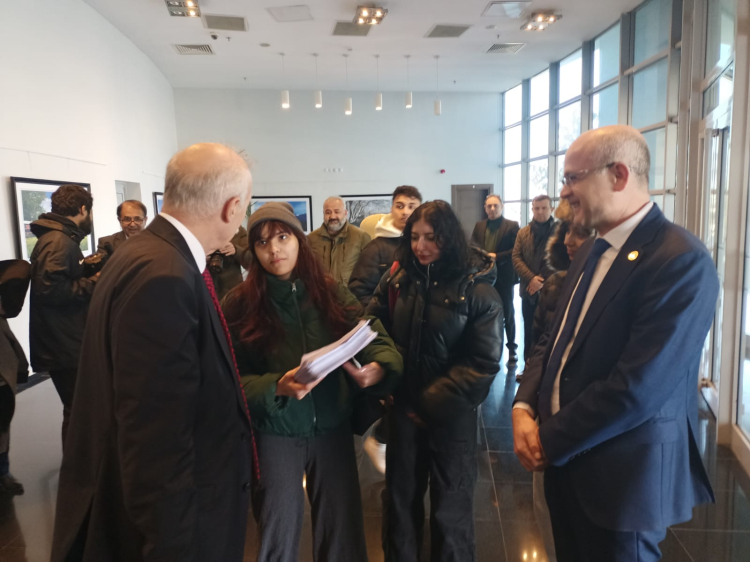 Öğrenciler, rektörlük binası önünde basın açıklaması yaptıktan sonra binaya giriş yaparken; öğrencileri Rektör Hatipler ile birlikte rektör yardımcıları ve üniversite sekreteri karşıladılar. Rektör Hatipler, öğrenciler tarafından uygulamaya karşı toplanan imzalı 500 dilekçeyi ve görüşme talebini kabul ettiğini belirtti. Hatipler, öğrencilerle yaklaşık 1 saat görüşme yaparak hem uygulama hem de kampüslerdeki sorunları dinledi ve öğrencilere cevap verdi.