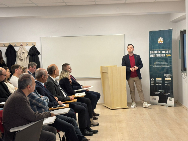 Konuşmaların ardından Patent Vekili Furkan Ali Dönmez, patent farkındalık eğitimi gerçekleştirdi. Gerçekleştirilen eğitimde sınai mülkiyet hakları; patent / faydalı model – teknik fonksiyon, marka – isim hakkı, tasarım – görsel koruma, coğrafi işaret – yöresel ürün koruması gibi çeşitli konularda bilgi verdi.