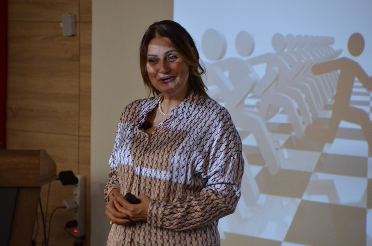 Programın ilk bölümünde Makine Mühendisi Ceren Çiçek, “Kendine Liderlik” başlıklı sunumunda bireysel farkındalık, hedef yönetimi, kişisel motivasyon ve öz liderlik kavramlarının kariyer başlangıcındaki önemine değindi. Sunumun interaktif ilerlemesi ve öğrencilerin sorularıyla zenginleşmesi dikkat çekti.