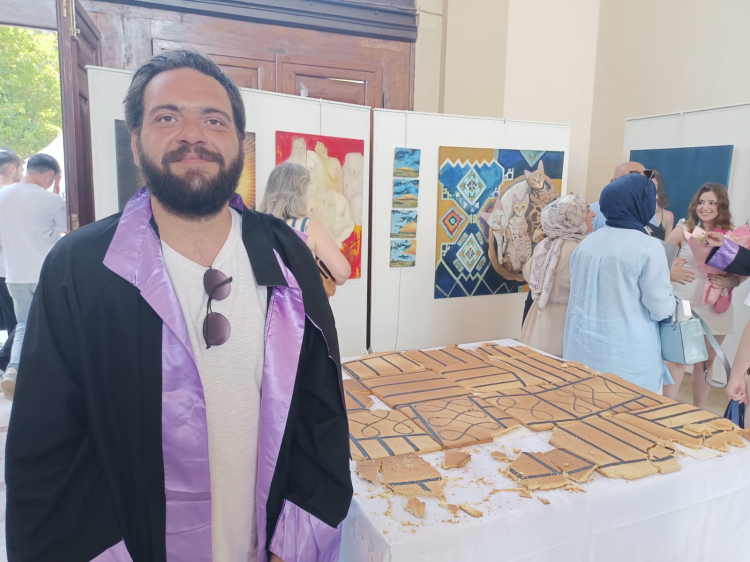 Grafik Tasarımı, heykel, iletişim ve tasarımı ve resim bölümlerinden mezun olan öğrencilerin eserlerinin yer aldığı sergide, heykel bölümünden birincilikle mezun olan Doğukan Paket’in “Relik” adlı eseri katılımcıların ilgi odağı oldu.
