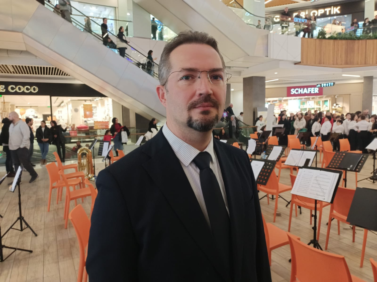 Trakya Üniversitesi Devlet Konservatuvarı Trompet Bölümü Dr. Öğr. Üyesi Ümit Çavuş da AVM’de konser düzenlemelerindeki amacı açıklarken; “Amacımız, çok sesli müziğin halkımıza daha yakın olması ve tanıtılması. Bunu yaparken de küçük yaştaki öğrencilerimizin sahne alması, bizi çok gururlandırıyor. 5’inci sınıf 10 yaşından 8’inci sınıf 14 yaşına kadar 70 öğrencimiz ilk defa bu kadar büyük çapta sesli müzik icra edecekler. Daha önce 29 Ekim, 23 Nisan gibi tarihlerde 10-15 dakikalık marşlar çalmışlardı. Ama bugün 1 saate yakın bir programı öğrencilerimizle birlikte sahneleyeceğiz. Repertuarımızda ağırlıklı olarak valslerimiz, yeni yıl şarkılarımız var. Geniş bir repertuar hazırladık. Bu repertuarımızı hazırlamak için çocuklarımızla yaklaşık 2 aydan beri çalışıyoruz” sözlerine yer verdi.