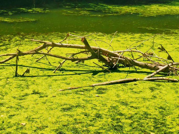 Su akışının tamamen durduğu nehirde, su mercimekleri oluşmaya başladı. Nehrin bazı bölgeleri adeta yeşile büründü.