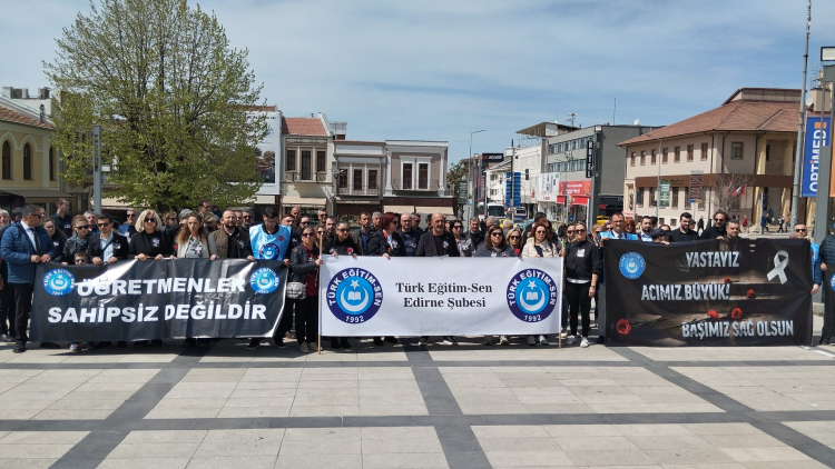 Türk Eğitim-Sen Edirne Şube Başkanı Mustafa Kaplan, okuduğu basın açıklamasında bu olayların, okullarda artan şiddet sarmalının ürkütücü boyutlara ulaştığını belirterek “Bir eğitim yuvasında, bir öğrencinin kendi öğretmenine ve arkadaşlarına bu denli bir şiddet uygulayabilmesi, üzerinde sadece adli değil, sosyolojik ve psikolojik olarak da derinlemesine düşünmemiz gereken bir durumdur. Okullarda disiplin yönetmeliklerinin yetersizliği, öğretmenin itibarının zedelenmesi ve eğitim ortamlarının her türlü şiddete açık hale gelmesi bu trajedilerin en büyük sebebidir. Eğitim kurumları şiddetin değil, sevginin, saygının ve güvenin merkezi olmalıdır. Bir öğretmenin, canını emanet ettiği öğrencisi tarafından hayattan koparılması, toplumun vicdanında onarılmaz yaralar açmıştır” dedi.