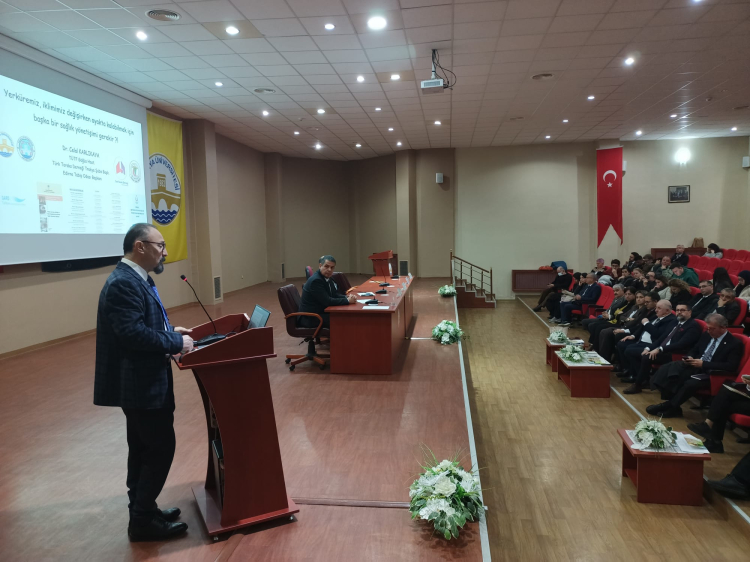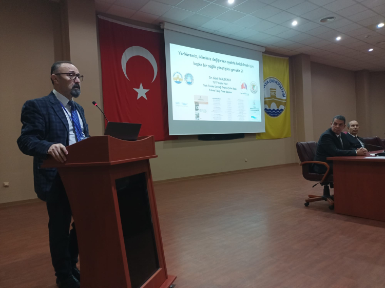 Edirne Tabip Odası Başkanı Prof. Dr. Celal Karlıkaya, Dünya Su Günü nedeniyle Edirne Çevre Gönüllüleri Derneği (EÇGD) tarafından düzenlenen İklim Krizi ve Edirne Sempozyumu’nda, “Yerküremiz İklimimiz Değişirken Ayakta Kalabilmek İçin Başka Bir Sağlık Yönetişimi Gerekiyor Mu?” konusunda sunum yaptı.