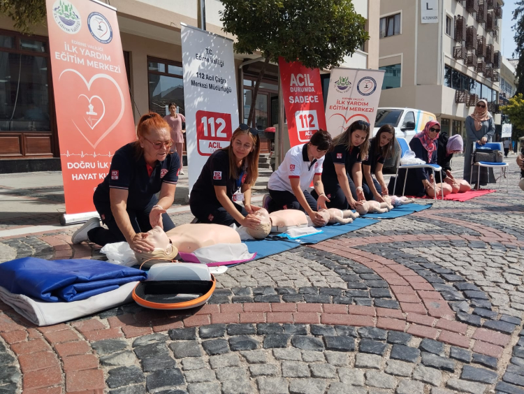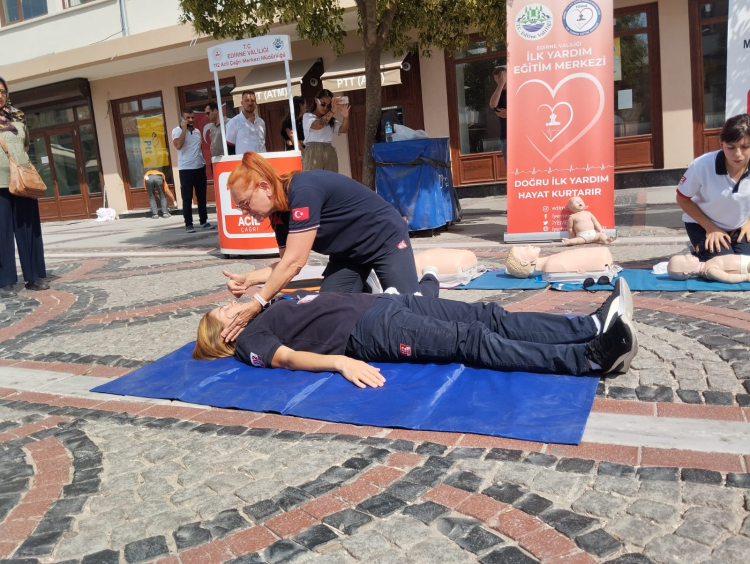 Edirne Saraçlar Caddesi’nde Dünya İlkyardım Haftası dolayısıyla etkinlik düzenlendi. 2019 yılında kurulan Edirne Valiliği İlkyardım Eğitim Merkezi tarafından düzenlenen etkinlikte ilkyardımın önemine değinilerek vatandaşların bilinçlendirilmesinin amaçlandığı aktarıldı. Etkinlikte konuşan merkezin sorumlu müdürü Ayten Sünnetçiler, Edirne Valiliği İlkyardım Eğitim Merkezi’nin valilikler bünyesinde Türkiye’de kurulan ve ücretsiz eğitim veren tek merkez olduğunu belirtti.
