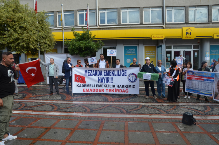 Edirne'nin Saraçlar Caddesi’nde Emeklilikte Adalet Derneği (EMADDER) tarafından basın açıklaması gerçekleştirildi. Derneğin Genel Başkanı Mihriban Uğurlu, çalışanların karşı karşıya kaldığı adaletsizliklere vurgu yaptı. Uğurlu, hükümete seslenerek EYT yasası nedeniyle ortaya çıkan mağduriyetlerin giderilmesi gerektiğini söyledi.