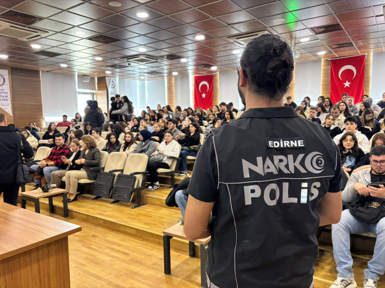 Edirne Emniyet Müdürlüğü Narkotik Suçlarla Mücadele Şube Müdürlüğü tarafından yürütülen “Narko Gençlik Projesi” kapsamında Trakya Üniversitesi (TÜ) öğrencilerine yönelik farkındalık eğitimi düzenlendi.