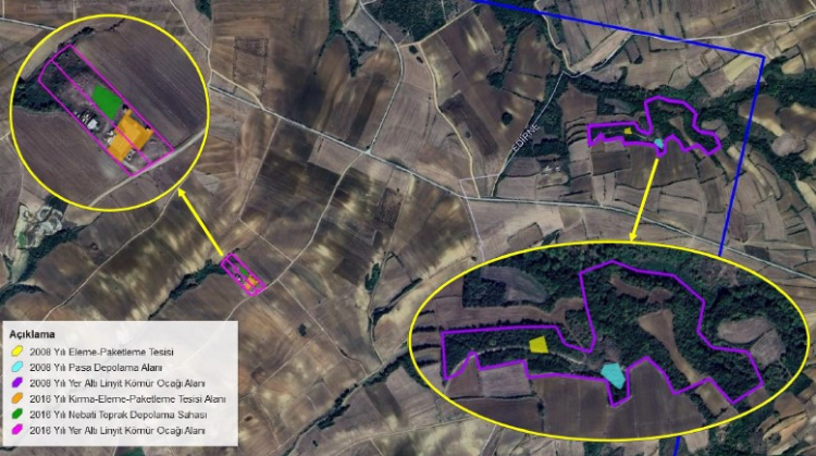 Dosyada, projede yer altı ocağı kömür üretimi ve Kırma-Eleme-Paketleme Tesisi faaliyeti gerçekleştirilmeyeceği, yalnızca Açık Kömür Ocağı işletileceğine yer verildi. Projede, 2016 yılında alınan “ÇED Gerekli Değildir” kararında belirlenen yerüstü alanlarının ÇED Alanı-3/Şantiye Alanı olarak planlandığı ifade edildi. Bin 551,63 hektarlık ruhsat alanı içerisinde 3 poligon olarak planlanan ÇED alanları ve 2008 yılında alınmış olan “ÇED Gerekli Değildir” kararındaki yer üstü alanlarının dikkate alınarak toplam 24,95 hektarlık alanın, ÇED alanı olarak belirlendiğine yer verildi.