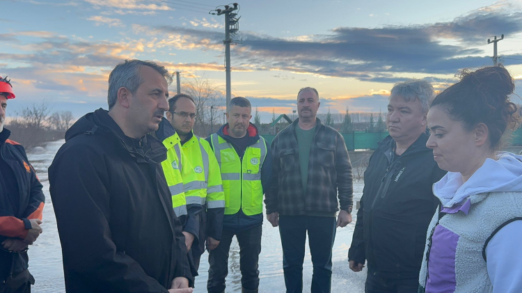 Meriç Nehri’nin yatağından çıkarak tarım arazileri ve bağ evlerini su altında bırakmasının ardından bölgeye giden Edirne Valiisi Yunus Sezer, çalışmaları yerinde inceledi. Ekiplerle bir araya gelerek son durum hakkında bilgi alan Sezer, kamuoyuna rahatlatıcı mesajlar verdi.