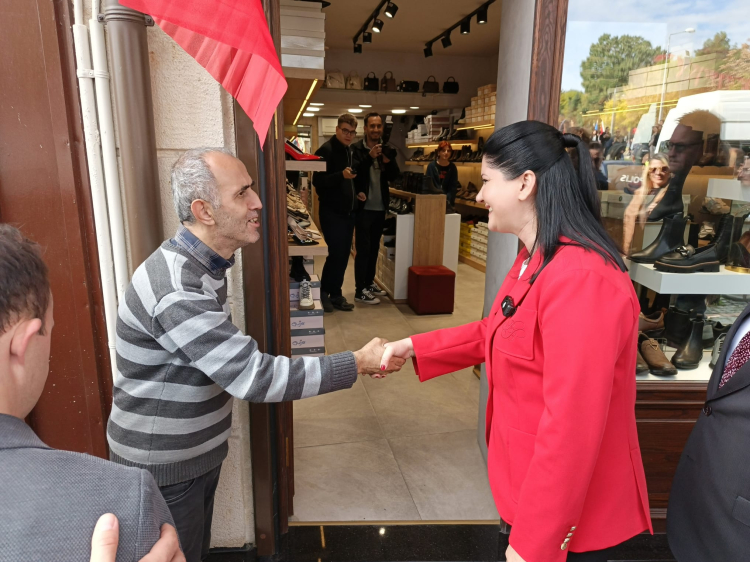 Milletvekili Yazgan ve Başkan Gencan, Atatürk anıtında düzenlenen resmi törenin ardından Saraçlar Caddesi esnafını ziyaret etti.