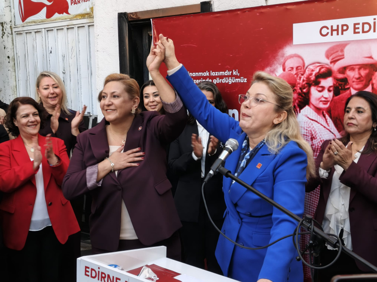 CHP Edirne İl Kadın Kolları Başkanı ve İl Genel Meclisi Başkanı Çiğdem Gegeoğlu ve CHP Edirne Merkez İlçe Kadın Kolları Başkanı Burcu Birgül Çolak tarafından parti binası önünde çiçeklerle karşılanan Kaya, örgüt ziyaretinin ardından basın açıklaması yaptı. Basın açıklamasına Edirne ve ilçelerinin yanı sıra çevre il ve ilçelerden gelen kadın kolları örgütleri katıldı.