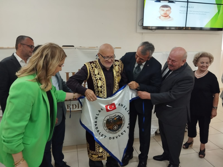 Edirne’de 37’nci Ahilik Haftası etkinlikleri kapsamında Şed kuşanma töreni düzenlendi. Edirne Küçük Sanayi Sitesi Sosyal Tesisleri’nde gerçekleşen tören, saygı duruşu ve istiklal marşının okunmasıyla başladı. Şed kuşanma töreni öncesi konuşan Edirne Valisi Yunus Sezer, “Bugün sadece Edirne'mizin gurur duyduğu, bir hayatı bir ile adayan hem Şükran ablamıza hem de Ali abimize buradan vefa duygularımızı belirtmek için toplanmış durumdayız. Aynı zamanda da bizi biz yapan, millet yapan ve bu millet yapma anlayışıyla bir medeniyet inşa ettiğimiz bir Ahilik geleneğini de yeniden hatırlamak için toplandık. Aslında söz olarak birbirimize çok söylediğimiz ahlak, paylaşma, dayanışma, cömertlik sözlerinin gerçekten de esnafların içerisinde ve toplum içerisinde tekrar hatırlanması ve yaşatılmasının bu toplantılar vesilesiyle çok önemli. Ahilik geleneği 1200’lü yıllardan başlamış ve halen daha devam eden bir gelenek. Bu geleneğin içerisinde aslında bir ruh var. Aynı zamanda bir denetim mekanizmasıyla da bu ruhun devam ettirilmesi ve toplumun inşa edilmesi adına da çok önemli bir anlayış ortaya koyuluyor” dedi.
