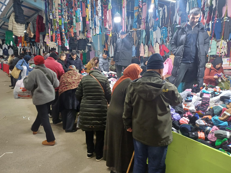 Sabah erken saatlerden itibaren başlayan yoğunluk, gün boyunca devam etti. Soğuk havanın etkili olmasına rağmen yaşanan yoğunluk esnafı mutlu etti. Özellikle kışlık ürünlere olan ilginin büyük olduğu pazarda etiketler, henüz asgari ücrete yapılan zamdan etkilenmemiş görünüyor.
