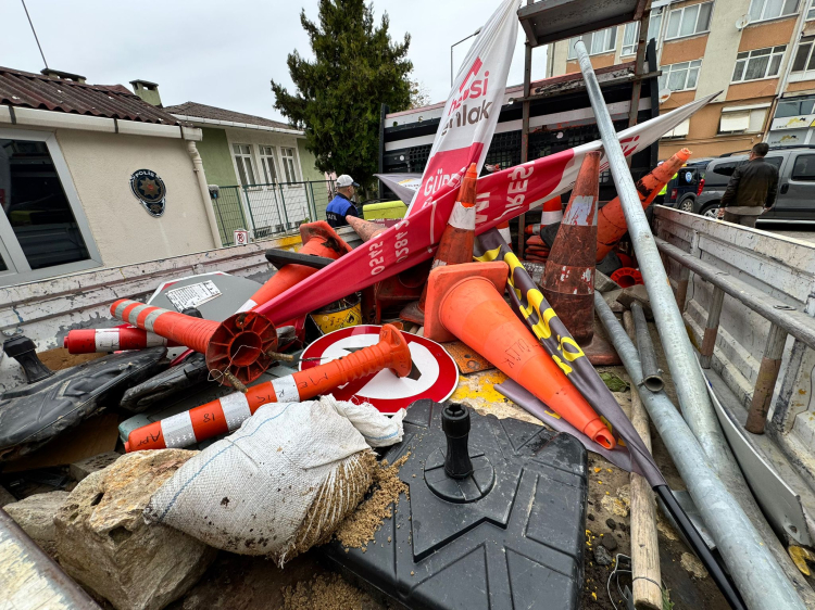 İşyeri sahipleri yola koydukları bayrak ve çeşitli reklam malzemelerinin toplanmasına tepki gösterirken, yoldan geçen vatandaşlar da ekiplere teşekkür etti.