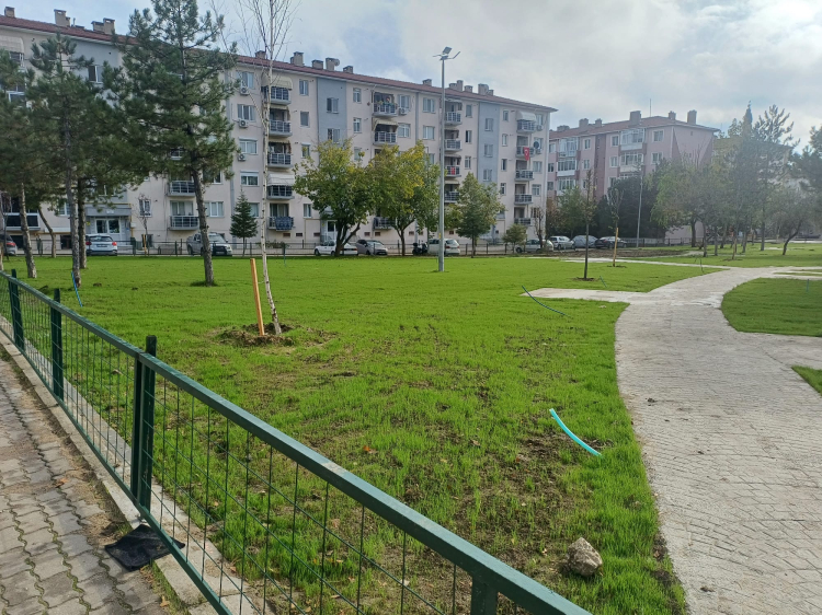 Parkta ekilen yeni çimlerle daha yeşil ve canlı bir görünüm elde edilirken, belediyenin modern tasarımlı yeni bankları da alana yerleştirildi. Çevre düzenlemesi kapsamında yeni çitlerin montajı da yapıldı.