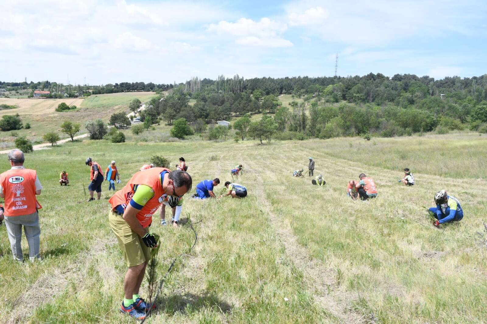 TEMA gönüllüleri ve Bisiklet tutkunları çölleşmeye dikkat çekmek amacıyla pankart açıp hep beraber poz verdi.