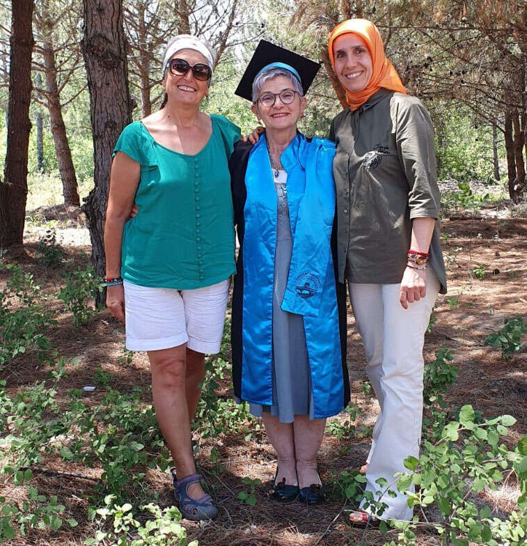 Emekli hekim 71 yaşındaki İnayet Dikim Korkut, bölümden birincilikle mezun oldu.