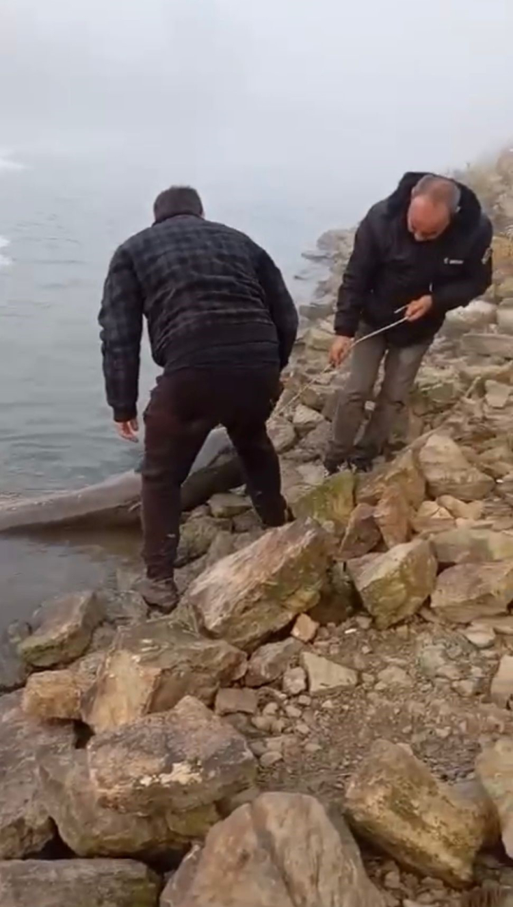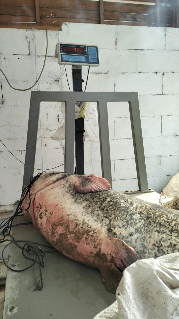Gördükleri manzara karşısında hayrete düşen balıkçılar, dev balığı güçlükle kıyıya çıkardı. Kantarda ağırlık ölçümü yapılan balık, hafif ticari aracın arka koltukları yatırılarak bagaja sığdırıldı. Balıkçıların hem nehirde hem de karada yaşadıkları zorlu anlar ise saniye saniye cep telefonu kamerasıyla kaydedildi.