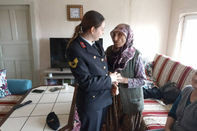 Jandarma personeli, Edirne’nin Lalapaşa ilçesinde ikamet eden 97 yaşındaki Şahsine Tüfekçi evinde ziyaret edilerek 8 Mart Dünya Kadınlar Günü’nü kutladı.