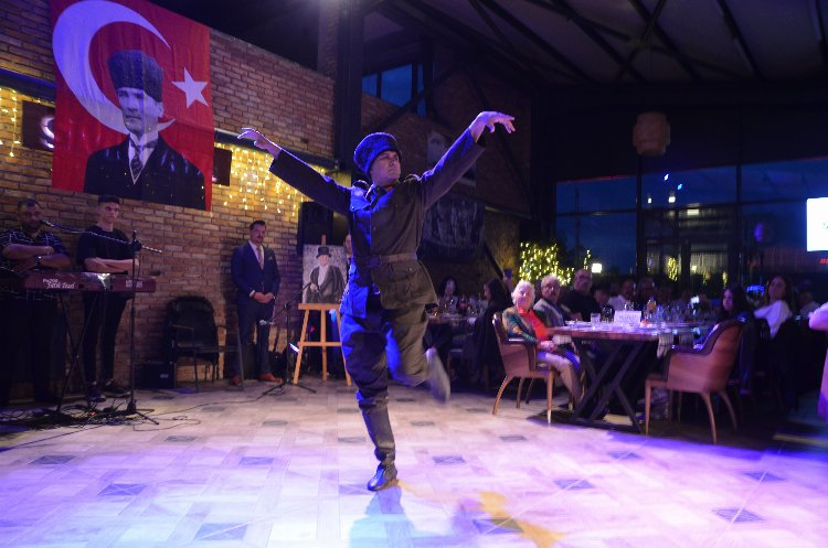 Atatürk’ün sevdiği şarkıların seslendirildiği yemekte, Atatürk’ün sevdiği zeybek oyunu da sahnelendi. Yemeğe gelen misafirlerden tam not alan gösteri ayakta alkışlandı.