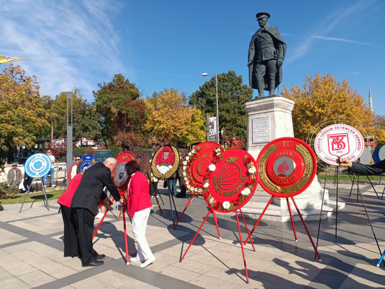ADD Şube Başkanı Celil Özcan ve ÇYDD Şube Başkanı Ayten Durmuş’un Atatürk anıtına çelenk sunması ile başlayan tören, Türkiye Cumhuriyeti’nin kurucusu Mustafa Kemal Atatürk, silah arkadaşları ve tüm şehitler için 1 dakikalık saygı duruşu ve İstiklal Marşı’nın okunması ile devam etti.