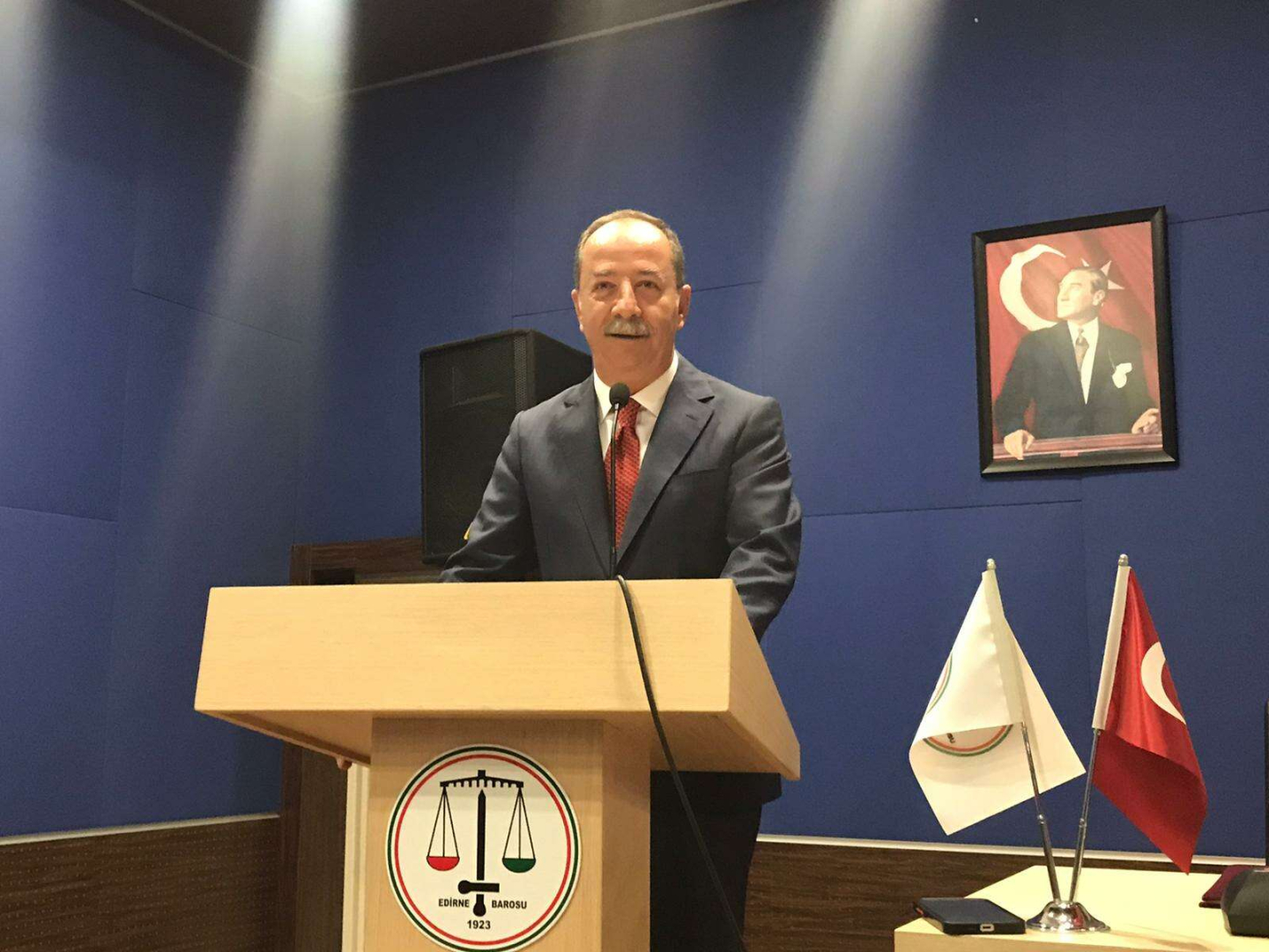 Törende konuşan Edirne Baro Başkanı Gökhan Karakoç, Mustafa Kemal Atatürk’ün “Cumhuriyet Kimsesizlerin kimsesidir” anekdotuna değinerek Atatürk’ün, devlet örgütlerinin yurttaşa hizmet için var olduğunu, yurttaşını sahiplenmesini ve her şart ve durumda destek olmasını istediğini söyledi.