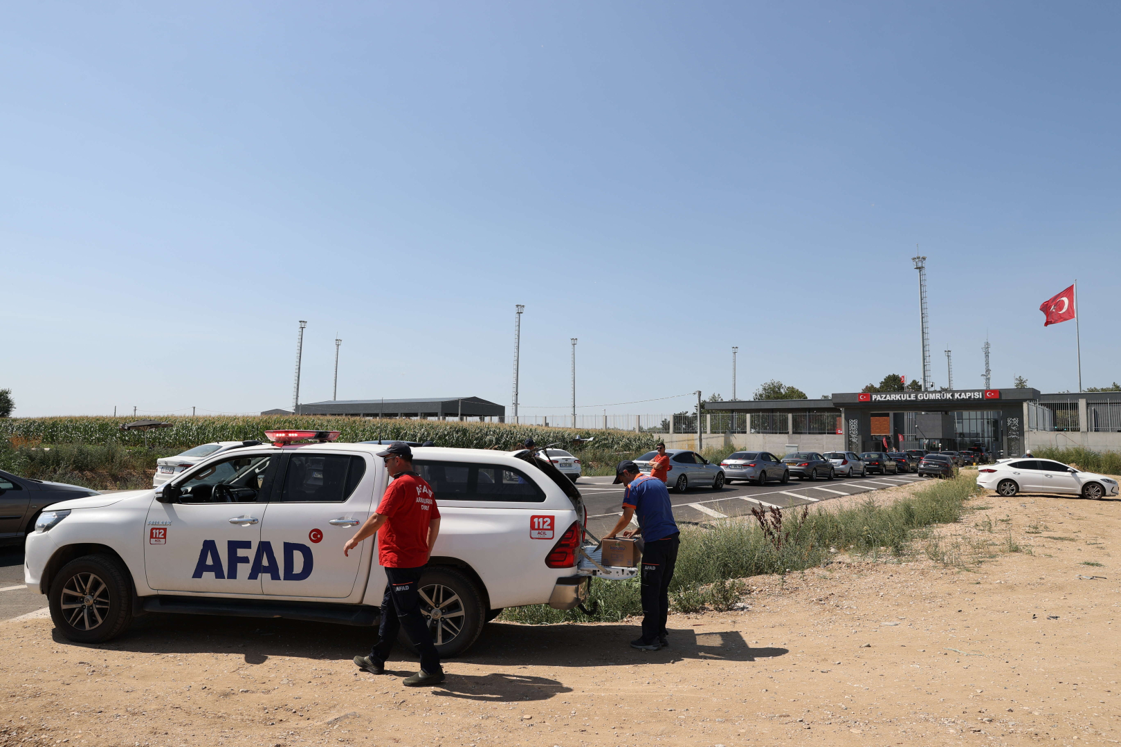 AFAD ekipleri de hava sıcaklığının 36 derece ölçüldüğü kentte, sınır kapısında araçlarının içerisinde işlemlerinin yapılmasını bekleyenlere şerbet ve su dağıttı.