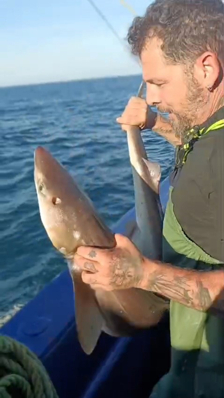 Kırklareli’nin Vize ilçesine bağlı Kıyıköy beldesinde avlanan balıkçı Yasin Püsküllü, ağlara takılan camgöz cinsi köpekbalığını tekneye aldıktan sonra kontrol etti. Köpekbalığının canlı olduğunu fark eden Püsküllü, hiçbir zarar vermeden dikkatlice tutarak denize iade etti. Koruma altındaki türün doğal yaşamına dönmesini sağlayan bu duyarlı hareket, bilinçli ve sürdürülebilir balıkçılık açısından takdirle karşılandı. Kırklareli Tarım ve Orman İl Müdürlüğünce duyarlı balıkçıya teşekkür edildi.