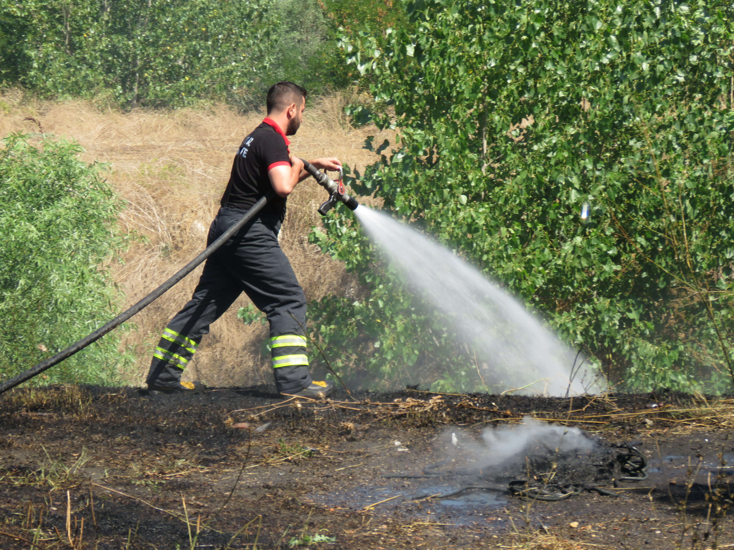 Yılmaz Mahallesi set yolu kenarındaki ağaçlık alanda henüz bilinmeyen nedenle yangın çıktı.