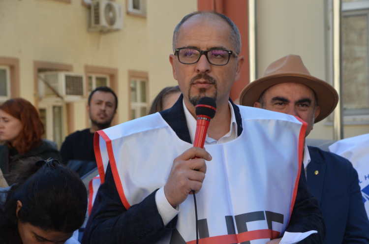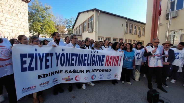 Gerçekleştirilen eylemde basın açıklamasını Edirne Aile Hekimleri Derneği Başkanı Taylan Önal okudu. Önal “Üzerinden daha bir ay bile geçmedi, bizler yine buradayız. Eziyet yönetmeliği adını verdiğimiz, bize dayatılmaya çalışılan bu yönetmeliğin taslağına olan tepkimizi gösterdik ve bu haliyle onaylanmaması gerektiğini hep bir ağızdan dile getirdik. 19 Ekim’de de Ankara mitinginde 7 bin 500 kişiyle bu yönetmeliği asla kabul etmeyeceğiz diye haykırdık. Ancak görüyoruz ki bakanlık bizi de tepkilerimizi de kale almamayı seçti ve yönetmelik 30 Ekim’de aynı şekilde onaylanıp Resmî Gazetede yayınlandı. Bakanlığın bizim tepkilerimize kulak tıkama gibi bir lüksü yoktur. Çünkü bu ülkede birinci basamak sağlık hizmetini veren bizleriz. Emeği veren bizleriz ve bizi dinlemek zorundasınız” dedi.
