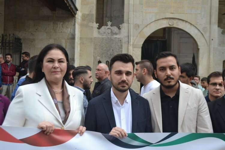 Edirne AK Parti Gençlik Kolları üyeleri, öğle namazı çıkışı Eski Cami önünde İsrail’i protesto ettiler.