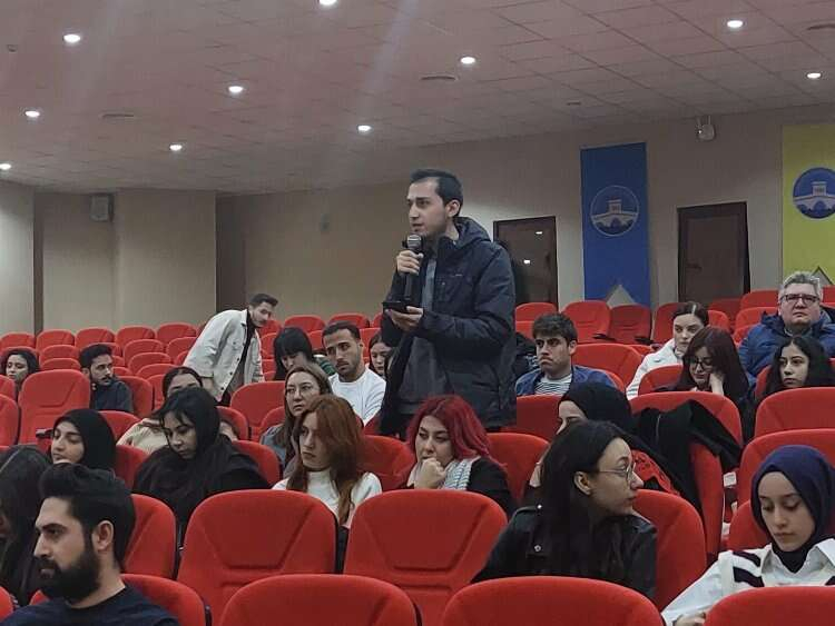 Uluslararası İlişkiler 2. Sınıf öğrencisi Buğra Alp Yörük, gerçekleştirilen konferansta söz isteyerek Akalın’a; “Bu sene açıklanan TÜİK verilerine göre açıklanan enflasyon oranının doğruluk oranı tartışılır. Bu ekonomik kriz sebebiyle birçok üniversite öğrencisi okulu bırakmak zorunda kaldı ve az bir miktar ile bir şeyler başarmaya çalışan gençler bu ülke için kendisinden birçok şeyi feda etmeye hazırdı. Ancak bazı kesimden kişiler oturduğu yerden mesaj yoluyla torpil isteyerek yerlerini doldururken, bizim hangi adaletten ve demokrasiden bahsetmemiz gerekiyor? Yıllar boyunca torpil düzeni ile makama ve mevkiye gelen kişiler bizlerin kaderini belirlerken, biz gençler bu durum konusunda ne yapmamız gerekiyor?” sorusunu sordu. Akalın, cevap olarak şu ifadelere yer verdi; “Enflasyon rakamlarına ben inanmıyorum. Ülkenin en önemli sorunu enflasyondur. Enflasyon bir canavardır. İşimiz çok zor. Adam kayırmak ülkeleri karanlığa götürür. Liyakatli insanların göreve getirilmemesini sağlar ve özellikle bizim türdeki ülkelerde çok büyük bir hastalıktır. Biz bunu yenemezsek ne hukuktan, ne de adaletten bahsedemeyiz. Fakat ben bunun değişeceğine inanıyorum” dedi.